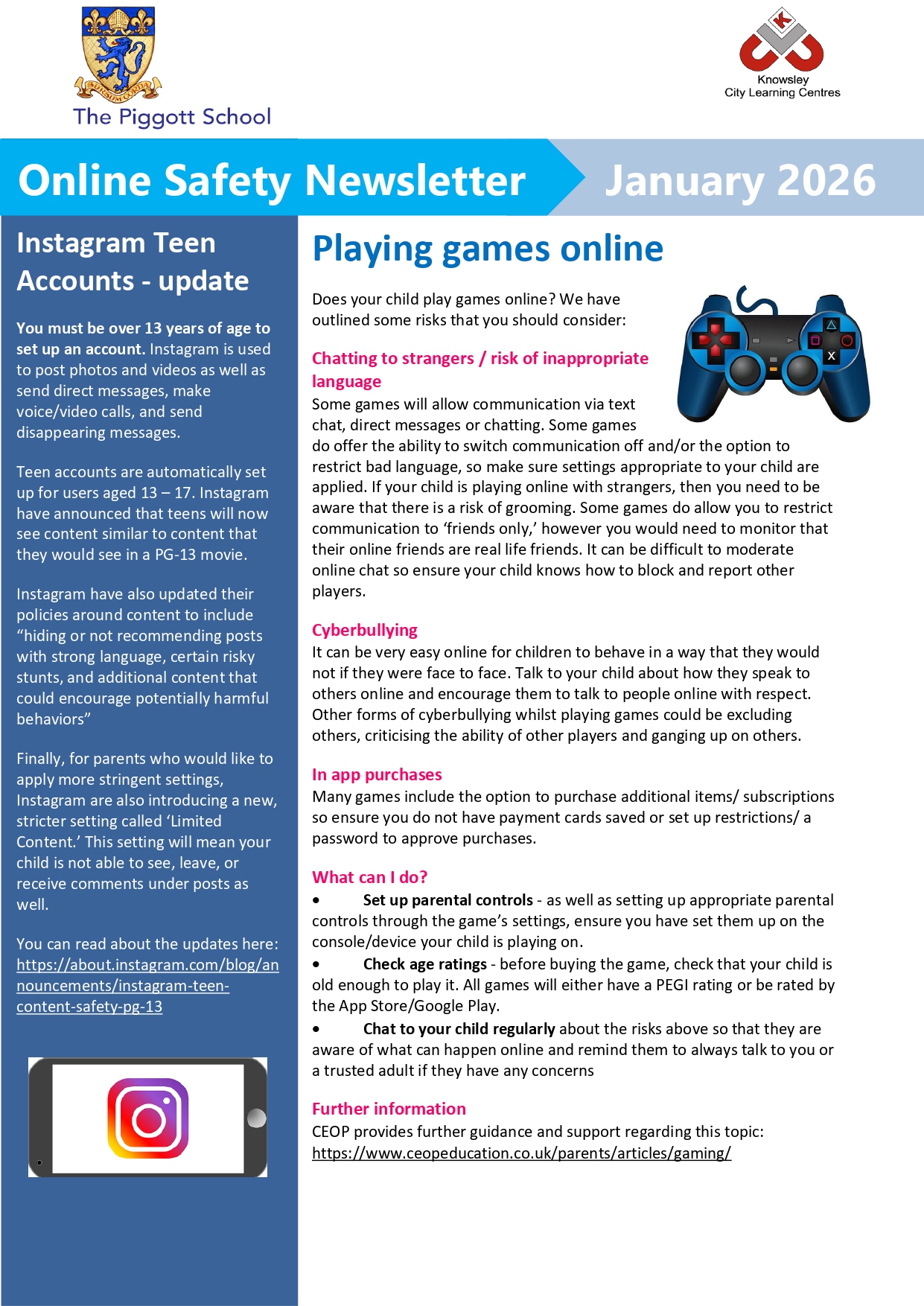 CEOP is a command of the National Crime Agency and is dedicated to tackling the sexual abuse and exploitation of children and young people. CEOP helps children and young people under the age of 18 who have been forced or manipulated into taking part, or are being pressured to take part, in sexual activity of any kind. This can be both online and offline. The CEOP Safety Centre offers information and advice for children and young people, parents and carers and professionals. You can visit the CEOP Safety Centre and make a report directly to CEOP by clicking the Click CEOP button.