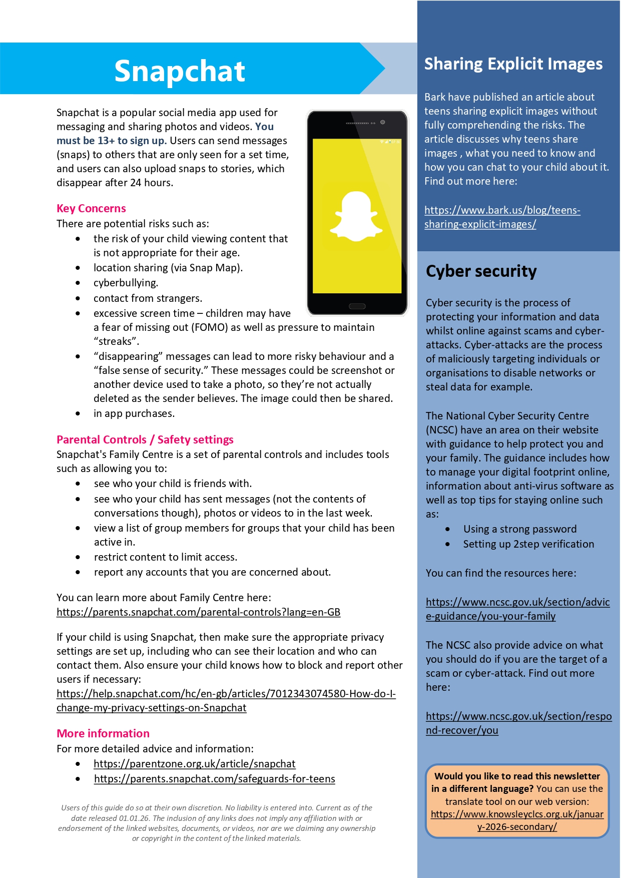 An excellent resource for students and parents is https://www.internetmatters.org/